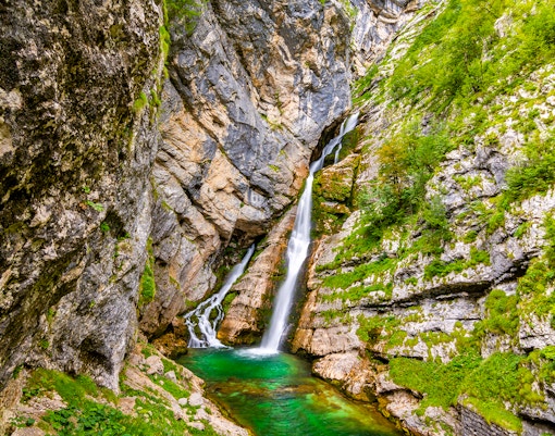 Una espectacular cascada escondida en el valle de Bohinj, a la que se llega mediante una corta caminata por el bosque. Su piscina turquesa es uno de los lugares más fotogénicos de Eslovenia.