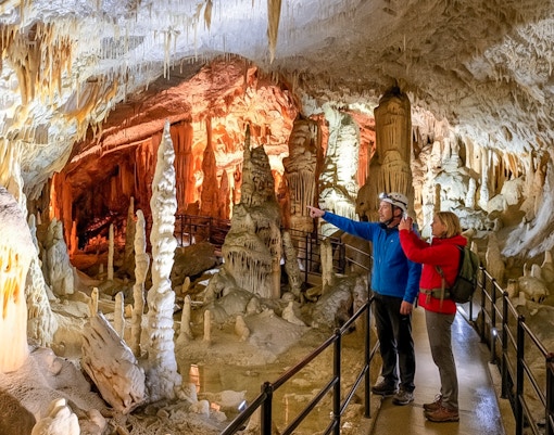 Uno de los mayores sistemas de cuevas kársticas de Europa, explorado mediante un tren subterráneo. Estalactitas, estalagmitas y vastas cámaras lo convierten en una maravilla natural.
